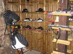 A word on how we built Wind Riders (because it’s demonstrative of our outlook): We wanted to provide our guests modern amenities in safe and comfortable structures, so we engaged a fully accredited architect and structural engineer. We’ve built keeping in mind the possibility, though unlikely, of serious typhoon or seismic activity. At the same time, we wanted to utilize as much of the native craft as possible, and build with the local environment in mind. So even though we’ve put aircon in all the rooms, it’s unlikely you’ll actually need to turn it on. Our ceilings are high, and the roofs are made of naturally cool native material (ambolong). We have broad overhangs to keep direct sun off the windows (and the sometimes lashing rain), and the exterior walls are textured (adobe style) to mitigate the sun’s heating energy. The walls are thick – an air space sandwiched between two hollow blocks that allows the exterior block to heat, but not transfer that heat into the interior of the building. We use solar energy to heat the water for our kitchens and baths. And we have the first water-free urinal on Bolabog Beach (in the cafe CR) to help us conserve fresh water. |