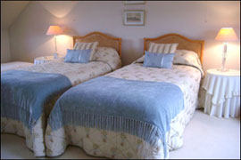 Kilrymont offers 4 star B&B accommodation in a newly built (2003) detached house with splendid views of the Ochill Hills and Craig Rossie in the foreground. Tona and Charlie have been involved in the bed and breakfast business for many years having previously run the successful 4 star Corshill Cottage between Stirling and the Trossachs. They take pleasure in making their guests welcome and are happy to help you plan your visit to this lovely area. Kilrymont AccommodationIn the house the comfortable lounge has a TV (freeview digital), stereo CD, literature of local interest and a selection of board games. There are 2 bedrooms - 1 twin / kingsize double on the first floor and 1 double on the ground floor with easy access for disabled visitors. Both rooms are en suite with excellent modern shower facilities. Breakfasts are a delight - excellent food prepared from