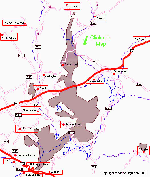 Information on the various cities towns and villages along the Winelands