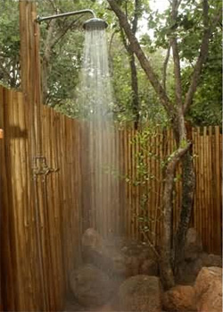 the rooms also have a screened outdoor bush shower, for that exhilarating