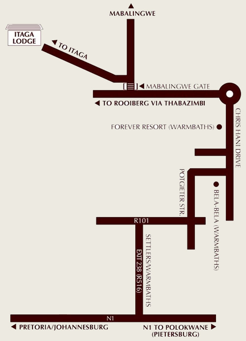 From Johannesburg or Pretoria, take the N1 North, Polokwane