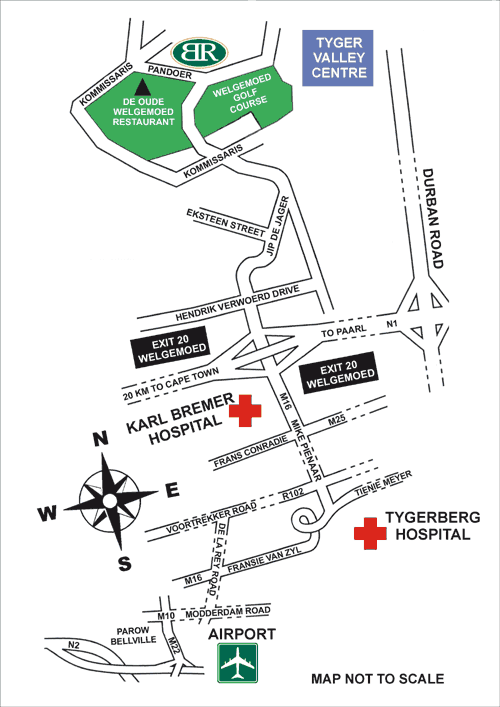 Drive on the N1 from Paarl, take exit 20 ( Karl Bremer Hospital / Jip