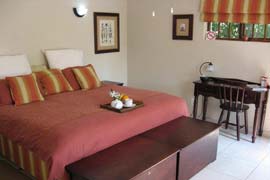 to share. “Bermuda Room” is a smaller twin-bedded room. Third is the “Hibiscus Room” (smaller double). Oregan pine floors and sash windows, add to the ambience. Each of these 3 rooms has a bar fridge with chilled soft drinks. Our 3 garden units are fully tiled and consist of "The