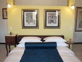 Calitzdorp Country House AccommodationOur accommodation includes five luxurious air-conditioned bedrooms, each with its own private patio, garden and fountain, are furnished throughout with Victorian, Cape and French antiques and graced with a fabulous collection of original South- and West African paintings, carvings and bronzes. Original Oregon wood floors provide the perfect mirrored showcase for