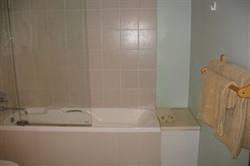 Two single beds. En-suite bathroom with shower over bath. Private entrance
