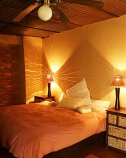 overlooks the giant Monkey Thorn tree, gardens and swimming pool.