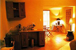 Fully-equipped kitchenette to lounge and dinning area. View of gardens