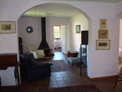 to Franschhoek, turning right at the T-junction onto the R45. The first turn to the left after this is La Motte B.P. Pad. Turn onto this dirt road and about 400 m up you will reach a small wooden bridge onto the property. The cottage will then be straight ahead.