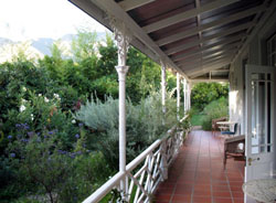 La Fontaine offers you fourteen spacious double bedrooms en suite; five upstairs in the main house with magnificent views of the surrounding mountains; one downstairs; three garden-suites, and a family-suite set in a peaceful garden with large swimming pool and courtyard surroundings. Each garden suite has a fireplace, DSTV, fridge, separate entrance and patio. Campbell House, an adjoining Victorian home offers you 3 dbl rooms en-suite, one of which is wheelchair accessible. Enjoy a generous buffet, or full English breakfast served indoors, or under our vine-covered pergola during summer season. The gardens have been beautifully landscaped to offer you privacy, and allows for a variety of birds to visit the garden during all seasons. La Fontaine Distinctives: • Centre of the village AccommodationLa Fontaine offers 14 spacious en-suite double rooms across our two heritage properties. Five en-suite double rooms upstairs and one en-suite double room downstairs, in the main house. Three garden suites, set in peaceful garden, pool and garden surroundings. Two Family friendly garden suites. Three Luxury rooms in Campbell House, our adjoining late 19th century home. Main House Room Two is an East facing spacious room with views of the Du Toits Peak and Franschhoek Pass mountains. It has a King/twin beds, a full en-suite bathroom with separate bath and shower. Used as the Honeymoon Suite. Room Three is an East facing room with a Queen sized bed, a newly renovated en-suite bathroom with shower and a relaxing view of Du Toits Peak Mountain range. Room Four looks to the West towards the Groot Drakenstein and Middelberg mountain ranges and has a balcony. It has twin beds, a newly renovated en-suite bathroom with Victorian bath and a shower. Room Five is West facing and has magnificent views of
