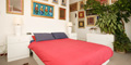 bedrooms with high ceilings and queen or king size beds and