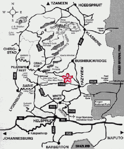 The lodge is situated 12 km from Hazyview, close to scenic drives
