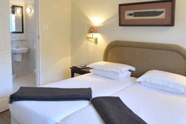 There are twin beds , en-suite bathroom and a comfortable sitting room