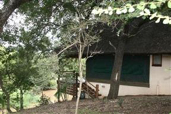Semi-tented unit with a wooden deck overlooking the Klaserie River.