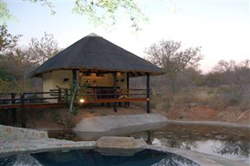 A wooden sundowner deck overlooking the Klaserie River completes these