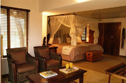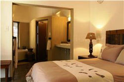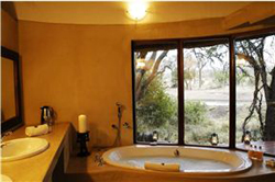 bedroom and the bathroom which offers large windows overlooking the waterhole.