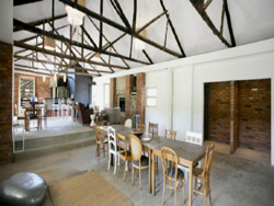 The boutique barn with its large fireplace, boma and stunning mountain views is perfect for summer and winter weddings.