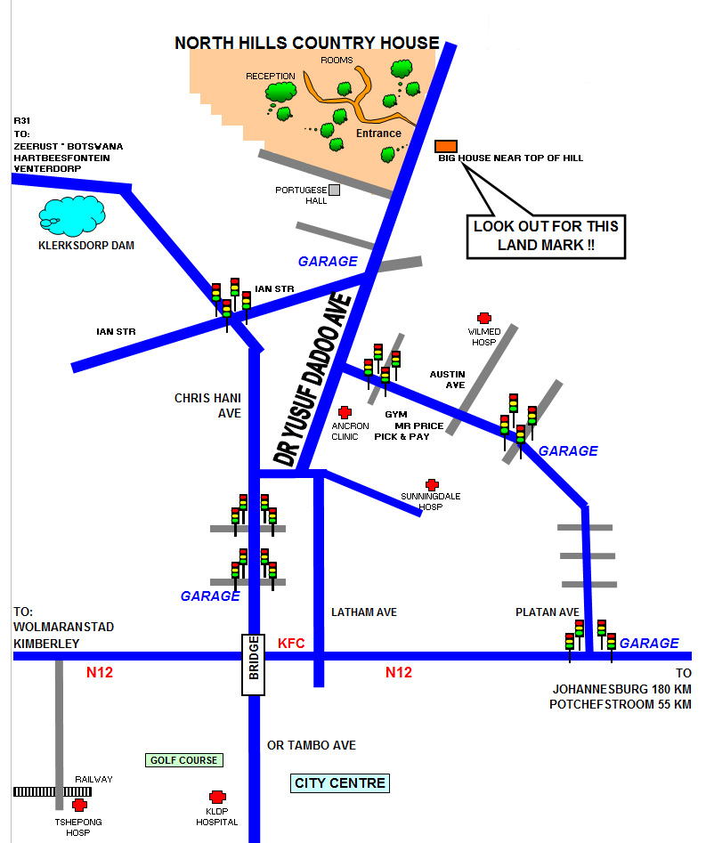 North Hill Country House KlerksdorpNorth Hill Country House accommodation guide – all the information you need about the accommodation at the North Hill Country House Klerksdorp South Africa. Photographs, room types, location and booking information for your stay the North Hill Country House Klerksdorp.