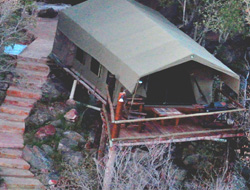 The tent overlooks the Waterberg mountains, has a king size bed with en-suite