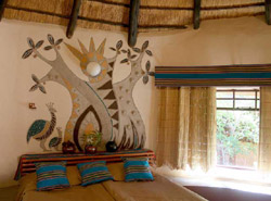 Our 10 intimate en-suite chalets, decorated by Ingrid Hahn, have a unique ethnic feel, whilst offering complete comfort and privacy. Children are accommodated in our family friendly units.