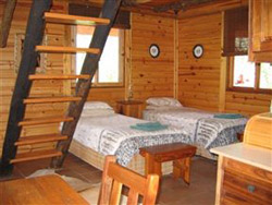 the Sand River. It has a room with a double bed downstairs, two lofts;