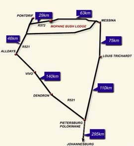 to the lodge. Total distance from Johannesburg to Mopane Bush Lodge is
