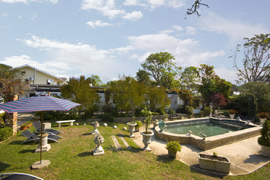 garden with Romanesque swimming pool. Winner Garden of the Year