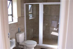 The spacious bathroom has a separate toilet, a shower and a washbasin.