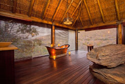 Floating between the towering trees and the forest floor, each of Sediba's fifteen suites embraces the natural environment whilst offering the ultimate in sumptuous comfort and tranquillity. The open-plan suites, each with lounge, double bedroom and en-suite bathroom, open onto personal secluded viewing decks overlooking the majestic Waterberg mountains