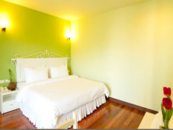 Standard Room Decorated in shades of blue, purple, blue, green and beige, each with a color scheme and interior differences together with the floor clean with beautiful wood furniture. The white curtains the same color to paint of the room. It also makes you feel comfortable with. Terrace with chairs for enjoying the fresh sea breeze as well. |