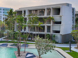 Ready to Move In White waves thumbling in the blue sea accompanied by a fresh breeze and warm sun conjures the image of sailing toward the borderless horizon. This was the source of inspiration for Baan San Kraam Hua Hin. The modern nautical style highlights the distinctively designed residential building, reminiscent of a sail, with balconies resembling the curve lines of white waves. Residents will feel like they are relaxing on the deck of a boat. |