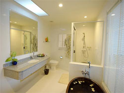 Accommodation All of our guestrooms and suites are uniquely decorated with specially made “ceramics”. This provides an unusual touch to colours, mood and tone. Most of our 67 rooms are sea-facing and enjoy stunning views. Each of our 5 Grand Suites is uniquely designed by different artists with different themes. It feature private bath and shower and toilet , the private shower room is specially designed with seating area for elderly people and is complemented with traditional Thai styled water jar. |