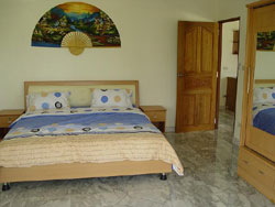 Bungalow Features 2 bedrooms with double bed and single beds, wardrobe and