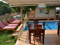 Nestled Among Plantation This small, homely resort, set in a mango orchard at the end of a traditional fruit-farming village, is nestled among pineapple, mango, coconut and watermelon plantations with unspoilt, scenic views of the beautiful surrounding hills. |