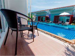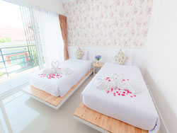 Deluxe Pool Access Twin Bed Is located on the ground floor and each individual room has a serene balcony with direct access to the pool. With a dreamy shell curtains, the terrace is perfect for a relaxing time with your lover.