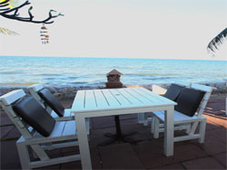 is directly above the beach. Come relax and enjoy your meal in the cool
