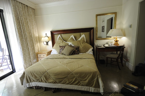 Bathrooms feature spacious showers and Victorian-style baths, with wildlife pencil sketches adorning the cool ivory-washed walls, reflecting the textures and moods of the Zambezi River.