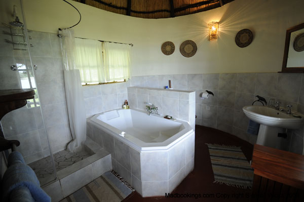 Our double, twin, or family bedrooms feature high thatch ceilings (nice and cool in the hot sun), comfortable beds, en-suite bathrooms, mosquito nets, and fans.