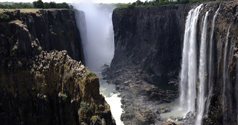 Victoria Falls lies between two countries Zambia and Zimbabwe and can